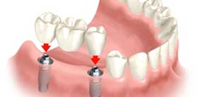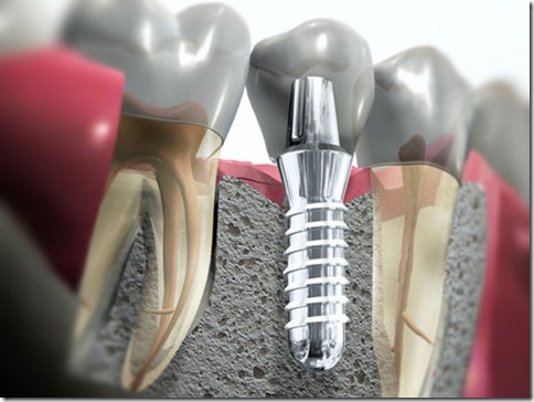 Implantes dentários são suportes ou estruturas de metal (normalmente de titânio) posicionadas cirurgicamente no osso maxilar abaixo da gengiva para substituir as raízes dentárias. Uma vez colocados, permitem ao dentista montar dentes substitutos sobre eles.
